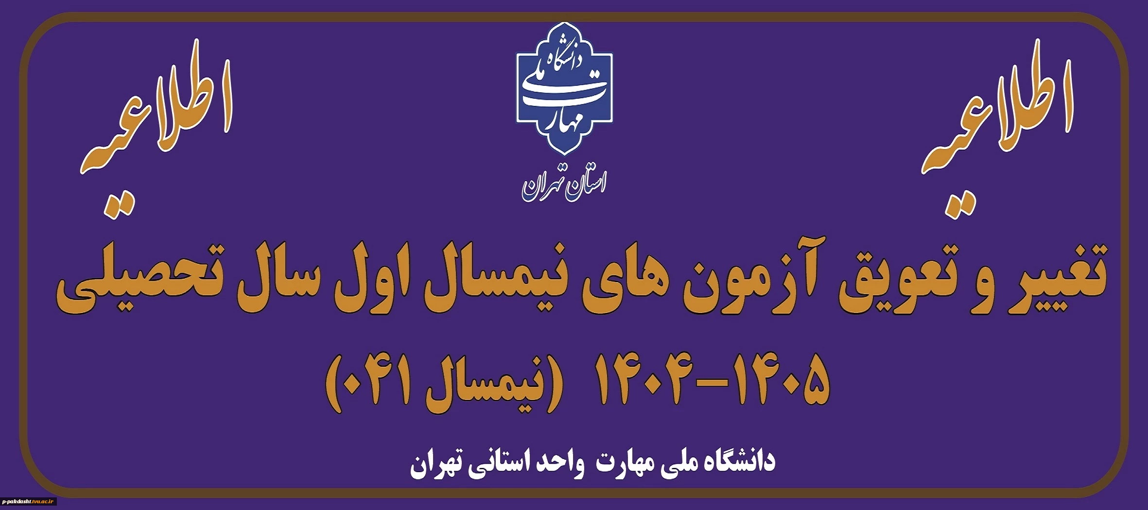 امتیاز دهید : اطلاعیه تغییر و تعویق آزمون های نیمسال اول سال تحصیلی 1405-1404(041) 2 یکشنبه 21 دی 1404 ساعت 10:03